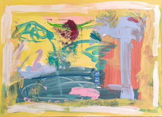 Estas dos pinturas deambulan por el taller desde hace tiempo y no las había mostrado. Han ido creciendo con pintura y materia que sobraba de otras. Las brochas empleadas en otros cuadros, antes de limpiarlas con agua, las pasaba restregándolas por estos cartones que son el soporte de ambas, para que dejaran el acrílico sobrante. Esos cartones no tenían la pretensión de ser cuadros terminados, pero según crecían con gestos, materia y color, vi que había un propósito. Estas pinturas me sirvieron para expresarme más libremente que en otras de soporte más selecto. Apliqué soluciones que no me atrevía en otros cuadros, por aquello de que no tienes nada que perder, como mayor grosor de la materia, el uso en ocasiones de la espátula, y dibujo más libre con la punta del pincel, creando figuración dentro de la figuración. Así que hay dinamismo, improvisación, materia, color, y cierta figuración en ambas. El tema para finalizarlas lo retomé de otras pinturas, que deben estar en algún sitio de este blog ÁRBOLES COMO NUBES. Así que se perciben como figurativas porque reconocemos inmediatamente el elemento árbol. Lo reconocemos porque lo tenemos fijado en la memoria y esto quizás no nos deja ver otras opciones, como por ejemplo nubes, "ancladas". Así, en vez de árboles como nubes, veríamos nubes como árboles. Otra opción es mirar el fondo, en muchos cuadros el fondo es el verdadero cuadro. En el primer caso, es un fondo matérico, de turbulencias, de gestos, de curvas, rotundo, que se extiende arropando los árboles. No hace alusión a horizontes, ni arriba o abajo, si no a lo abstracto. En el segundo caso, los colores cubren a otros colores de otras capas, sin ocultarlos del todo. Aquí si hay un horizonte que divide en dos partes el fondo, el de arriba donde flotan las nubes ocres, y el de abajo con una maraña de pinceladas, verdes ocres, grises. Al mirar estas dos pinturas y hacer estas lecturas figurativas, vemos que tienen conexión con el paisaje y la naturaleza, con la fuerza y energía de ésta y con el movimiento. Por eso, pintar es un ejercicio de empatía con lo que te rodea, y con el disfrute de la pintura como materia y color, permitiendo sacar emociones escondidas, y proyectarlas sincronizándolas con lo visible, creando así nuevos paisajes, nuevas pinturas.